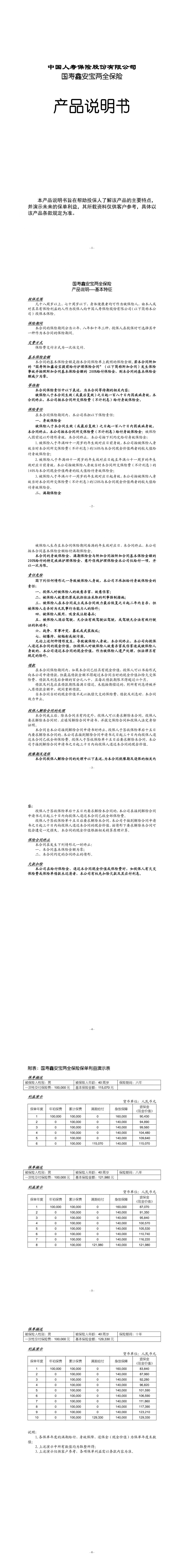 國壽鑫安寶兩全保險產(chǎn)品說明書